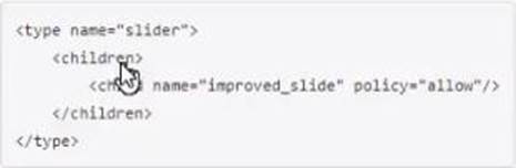 An Adobe Commerce developer has been asked to modify the PageBuilder slider content type to allow a new custom content type (other than slide) to be assigned as a child. The developer has already created the new content type called improved.slider_slide their module. They now need to create a new view/adminhtml/pagebuilder/content_type/slider.xml file in their module to allow the new content type to be a child of slider content types.