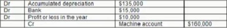 AB sold a machine for $15,000 The machine had originally cost $160,000 and al the dale of disposal had a carrying value of $26,000.
