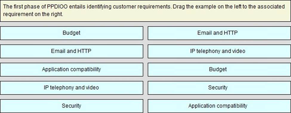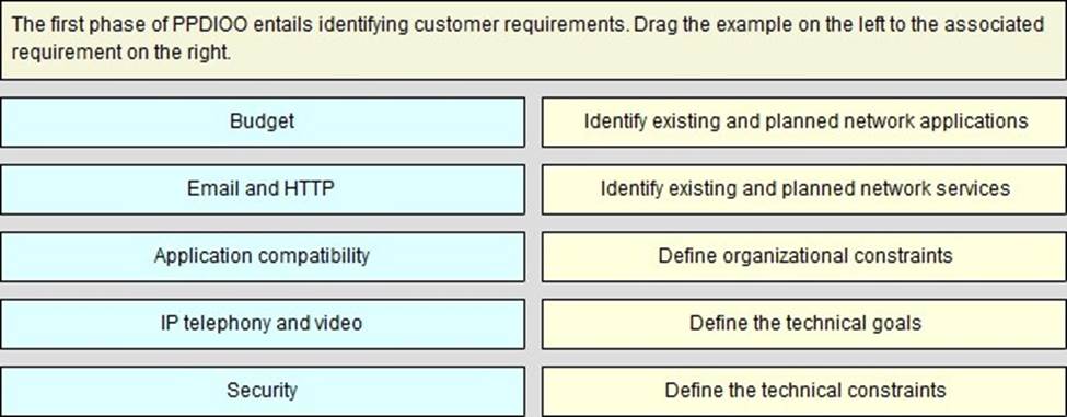 Drag the example on the left to the associated requirement on the right.