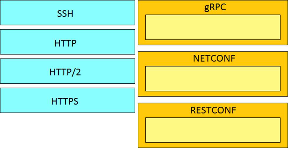 Drag and drop the network automation interfaces from the left onto the transport protocols that they support on the right. (Not all Options are used)