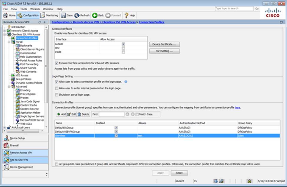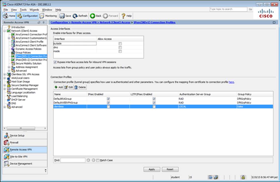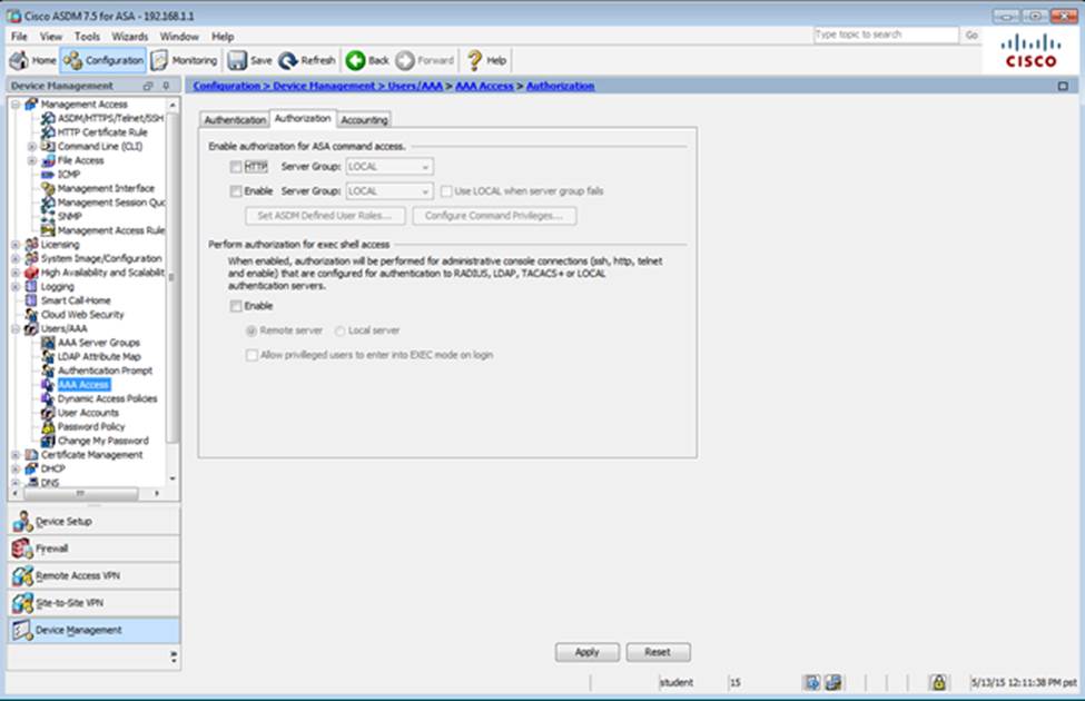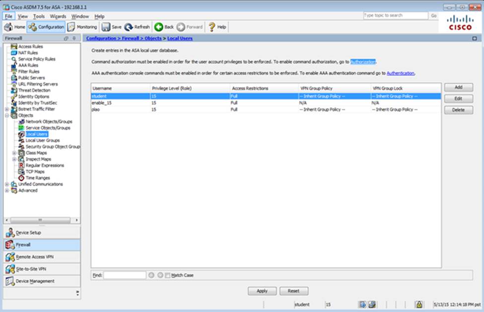 After you make the configuration changes in ASDM, remember to click Apply to apply the configuration changes.