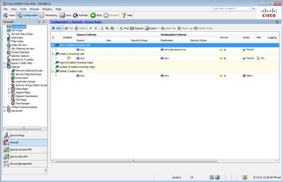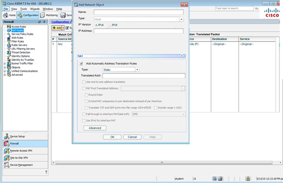 Scenario Given the new additional connectivity requirements and the topology diagram, use ASDM to accomplish the required ASA configurations to meet the requirements.