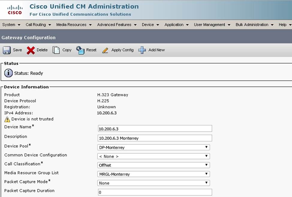 A Network Administrator needs to create a SIP route pattern to communicate with Monterrey’s Gateway. The Administrator does not understand why this is not working properly.