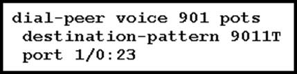 - B . Change the dial peer to dial-peer voice 9011 pots.