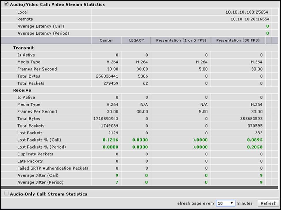 - B . On the phone, navigate to Administrator Settings > Status > Call Statistics > Video > Video statistics > Rcvr Packets statistics. Verify if the phone is receiving packets.