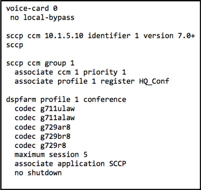 - C . The command dsp services dspfarm must be configured under the voice-card configuration.