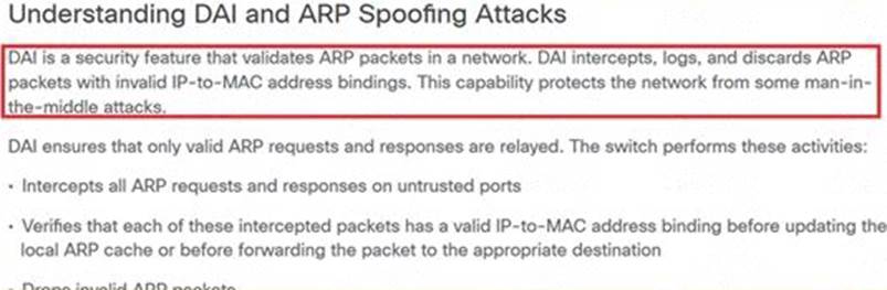Which security feature inspects ARP packets based on valid IP-to-MAC address bindings?