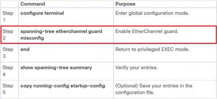 - D . CORE-SW (config) #spanning-tree etherchannel guard msconfig