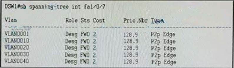 - D . The command spanning-tree portfast in the interface configuration mode was entered