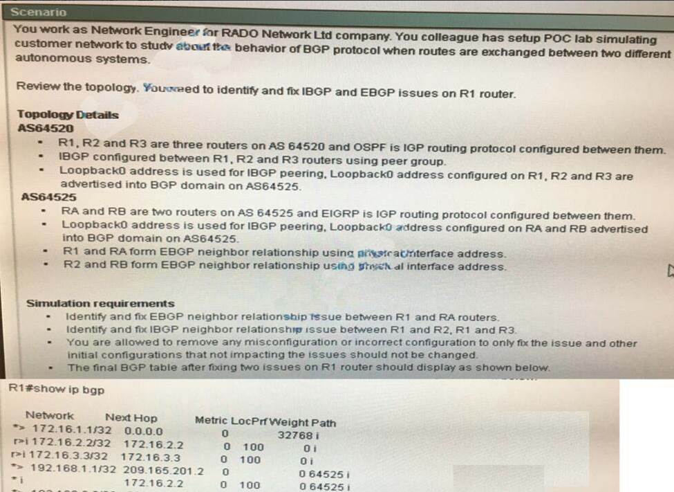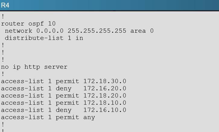 - E . The ACL configured on R5 is blocking traffic for the subnets advertised from R4.