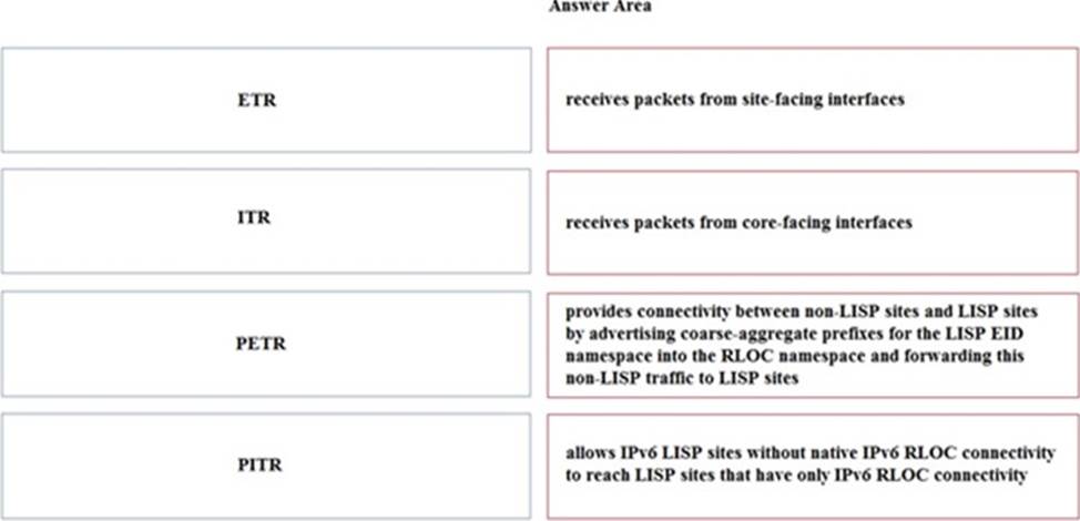 Drag and drop the LISP devices from the left onto the correct descriptions on the right.