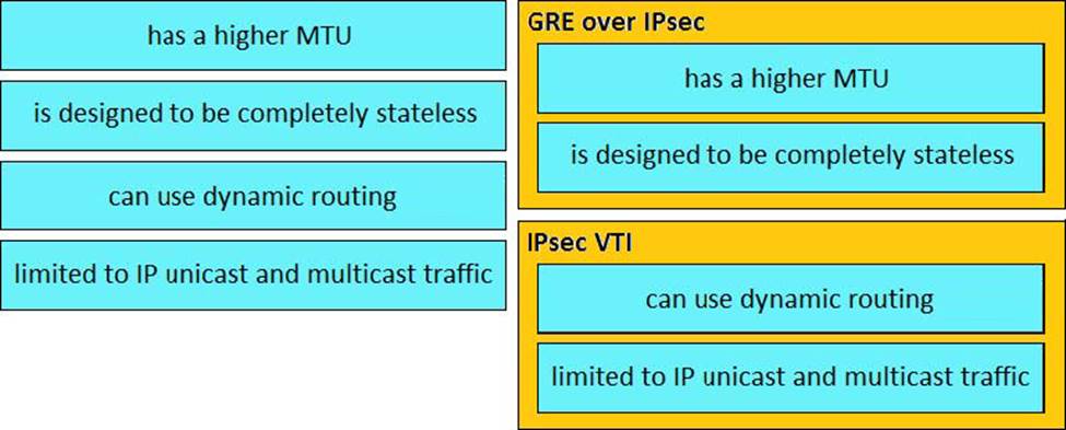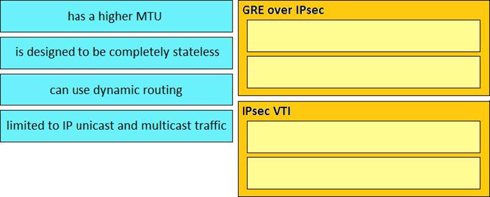 Drag and drop the descriptions from the left onto the correct IPsec tunnel types on the right.