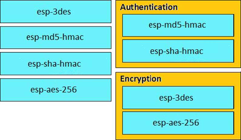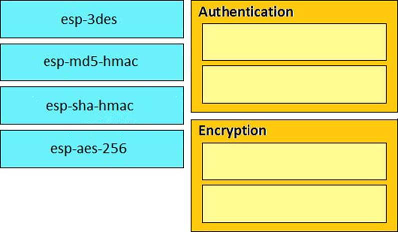 Drag and drop the cryptographic algorithms for IPsec from the left onto the correct cryptographic processes on the right.