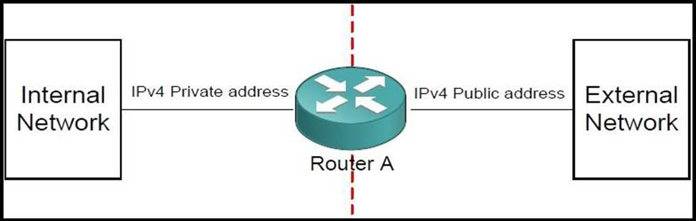 Which functionality must be enabled on router A to connect two networks for translating private addresses into "legal" public addresses on a one-for-one basis?