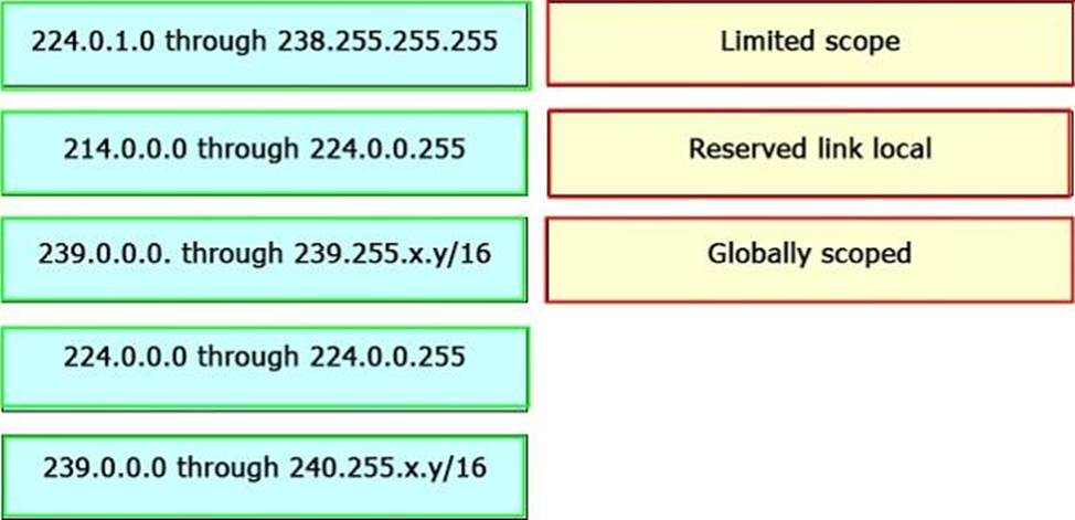 Drag and drop the IP address range on the left onto the specific purpose for multicast groups on the right. Not all options are used.