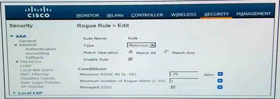 - D . a rogue with two clients, broadcasting the SSID "Enterprise" heard at -50 dBm