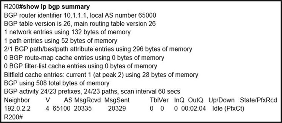 - A . R2 does not have a route to the next hop, so R2 does not advertise the prefix to other clients.