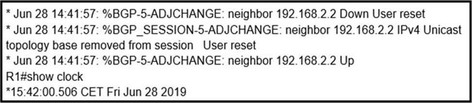 An engineer is troubleshooting BGP on a device but discovers that the clock on the device does not correspond to the time stamp of the log entries.
