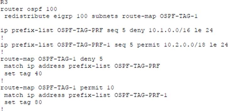 - A . OSPF redistributes RIP routes only if they have a tag of one.