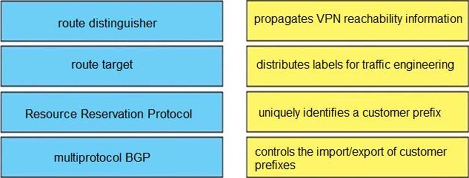 Drag and drop the MPLS VPN concepts from the left onto the correct descriptions on the right.