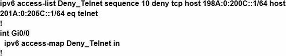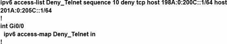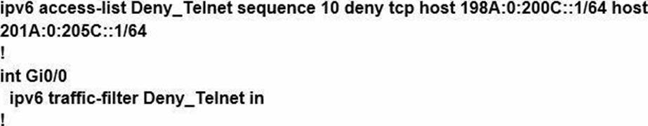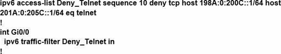 Which configuration denies Telnet traffic to router 2 from 198A:0:200C::1/64?