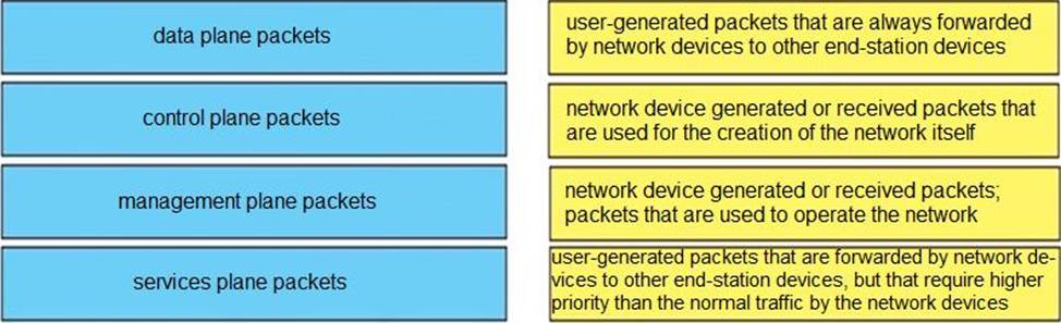 Drag and drop the packet types from the left onto the correct descriptions on the right.