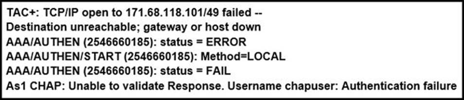 - D . The TACACS+ server is down, and the user is not in the local database.