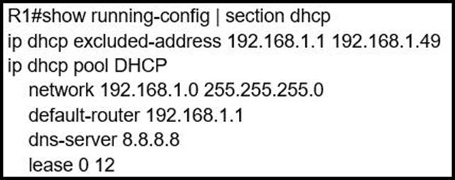 - A . Modify the subnet mask to the network 192.168.1.0 255.255.254.0 command in the DHCP pool