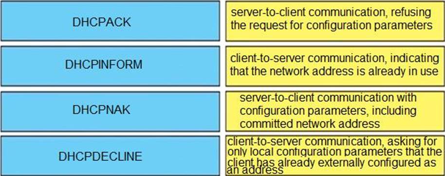 Drag and drop the DHCP messages from the left onto the correct uses on the right.