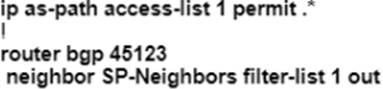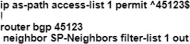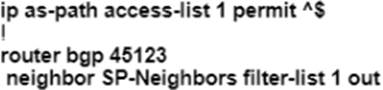 Which configuration ensures that the branch router in AS 45123 advertises only the local networks to all SP neighbors?