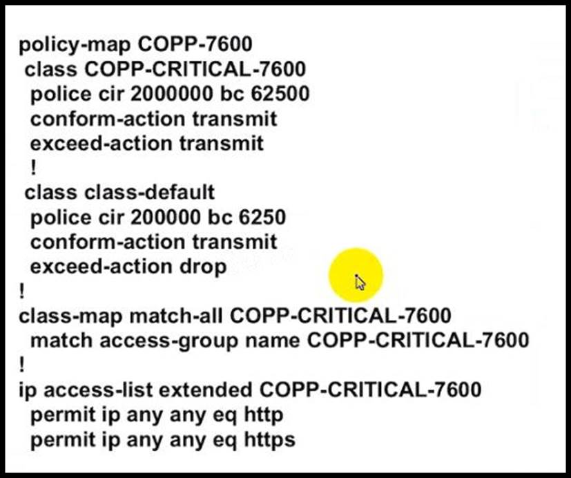 - D . Configure a three-color policer instead of two-color policer under class COPP-CRITICAL-7600