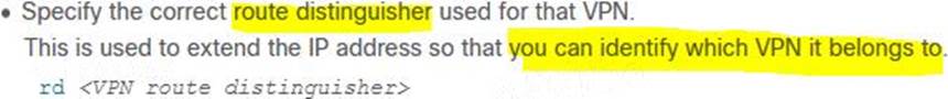 Which component of MPLS VPNs is used to extend the IP address so that an engineer is able to identify to which VPN it belongs?