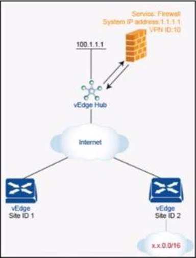Which set of configurations is required for all traffic from Site ID 1 going toward Site ID 2 to get filtered through the firewall on the hub site?