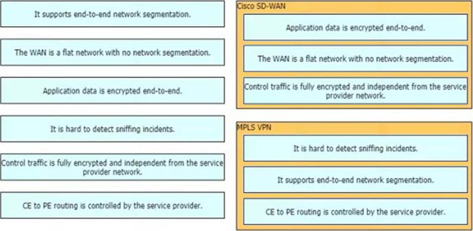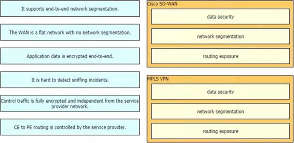 Drag and drop the characteristics from the left onto the configuration protocols they describe on the right.