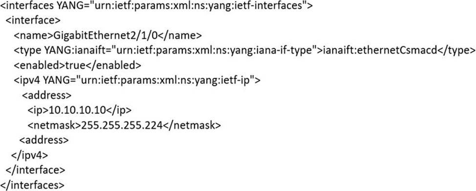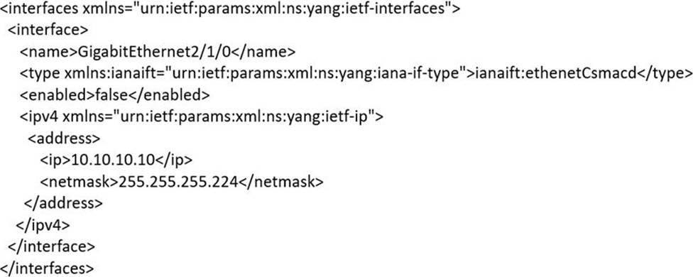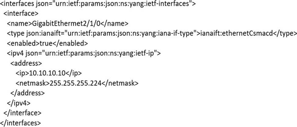 An engineer must use YANG with an XML representation to configure a Cisco IOS XE switch with these specifications: