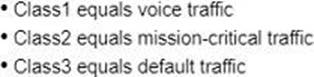 - B . Mark the traffic with DSCP CS6 and map into Class1 with a minimum bandwidth assigned by reducing the bandwidth available to Class2