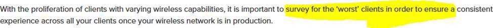 An engineer is designing a wireless network that will support many different types of wireless clients. When conducting the survey, which client must be used to ensure a consistent experience for all of the wireless clients?