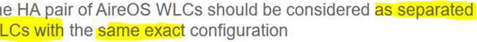 - B . If WLCs with HA SSO are deployed, each WLC in the WLC HA pair considered separately as a mobility peer.