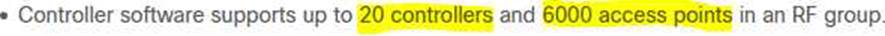 - A . up to 20 WLCs and 1000 APs