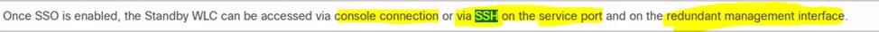 An engineer has successfully configured high availability and SSO using two Cisco 5508 Wireless LAN Controllers. The engineer can access the Active Primary WLC, but the Secondary Standby WLC is not accessible.