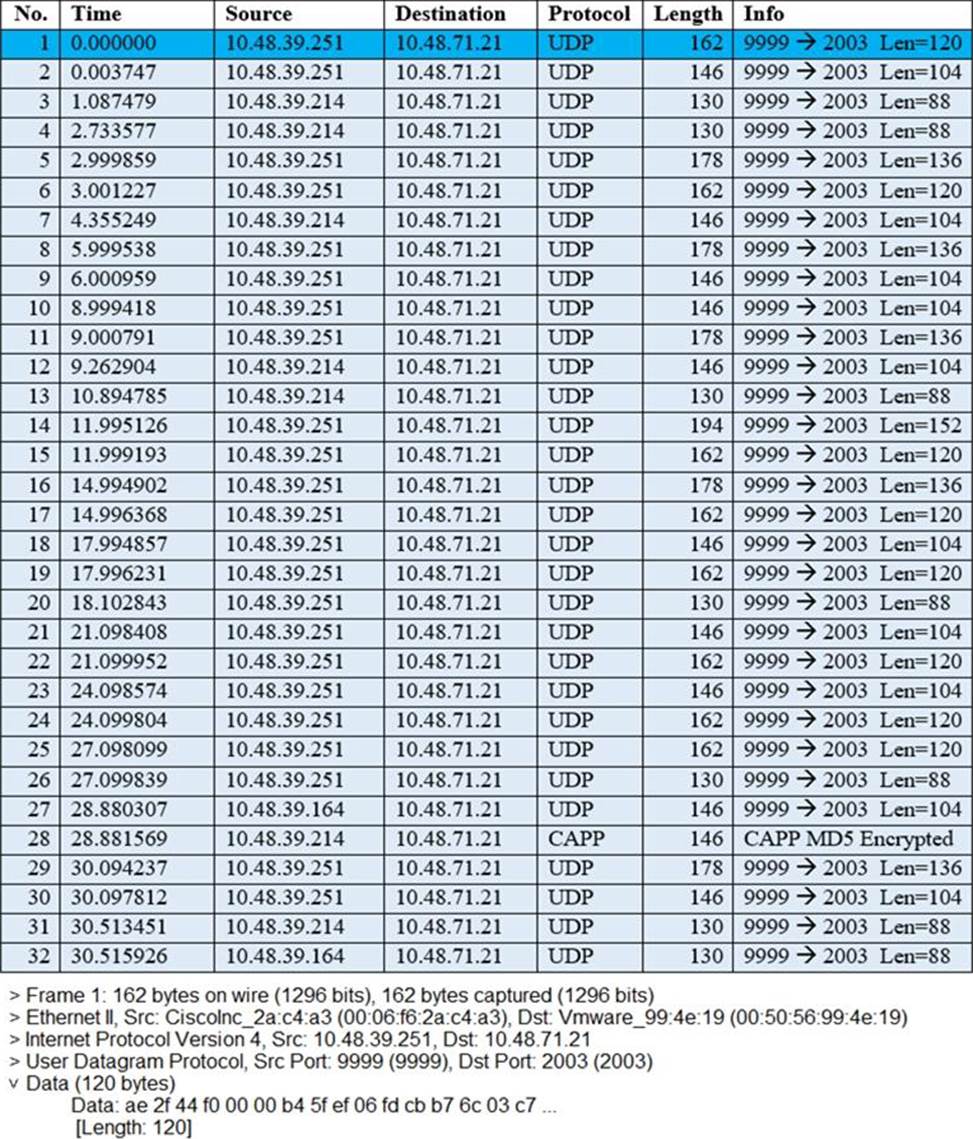 The image shows a packet capture that was taken at the CLI of the Cisco CMX server. It shows UDP traffic from the WLC coming into the server.