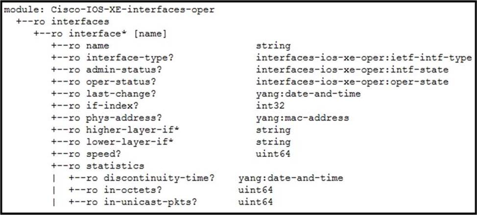 A RESTCONF GET request is sent to a Cisco IOS XE device. A portion of the response is shown in the exhibit.