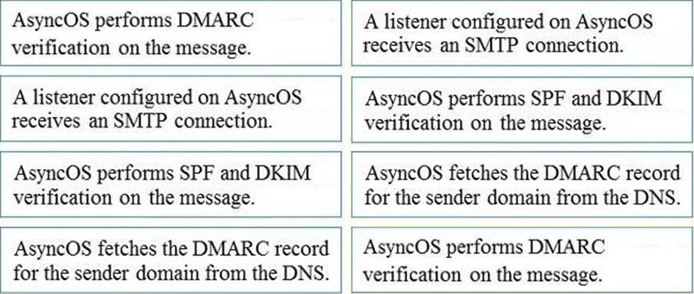 Drag and drop the AsyncOS methods for performing DMARC verification from the left into the correct order on the right.