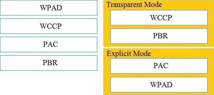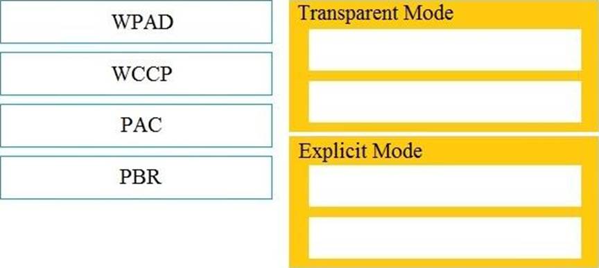 Drag and drop the Cisco WSA methods from the left onto the correct deployment modes on the right.