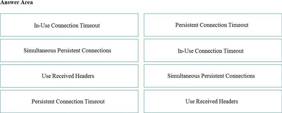 Drag and drop the properties from the left onto the correct advanced web proxy setting descriptions on the right.