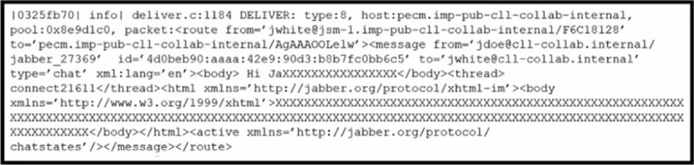 A collaboration engineer is troubleshooting an issue where a user is reporting that instant messages are not reaching the intended recipient. The engineer is unable to see the full instant message in the trace file.