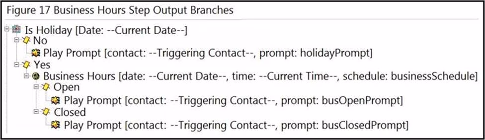 - A . Check the Business Hours only if the "Is Holiday" prompt returns a "Yes".