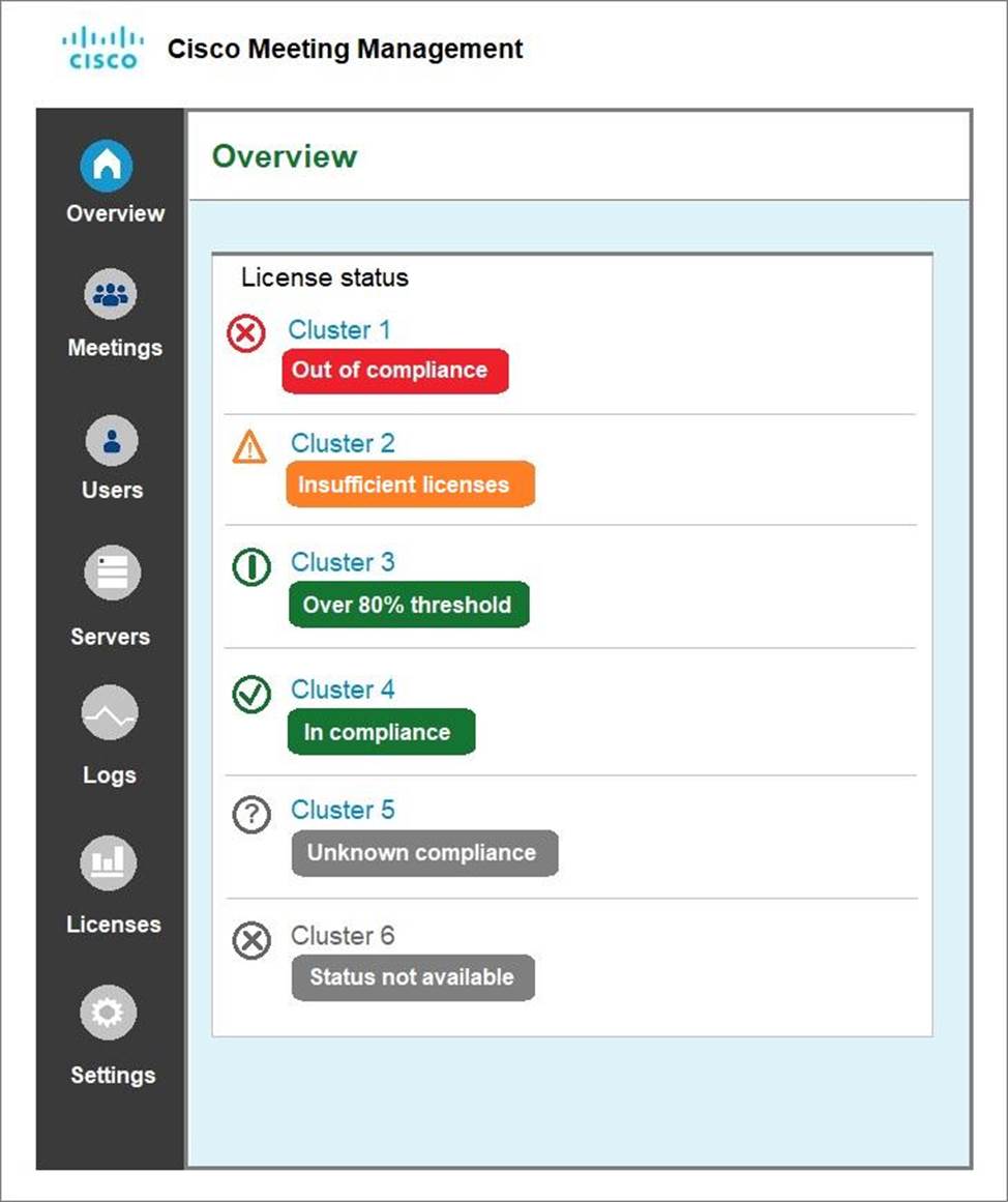 - A . In cluster 2, more licenses have been used than are installed for less than 15 days.