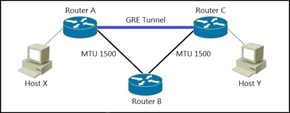 What happens when a 1500-byte IPv4 packet traverses the GRE tunnel from host X to host Y, assuming the DF bit is cleared?