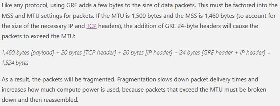 MTU has been configured on the underlying physical topology, and no MTU command has been configured on the tunnel interfaces.
